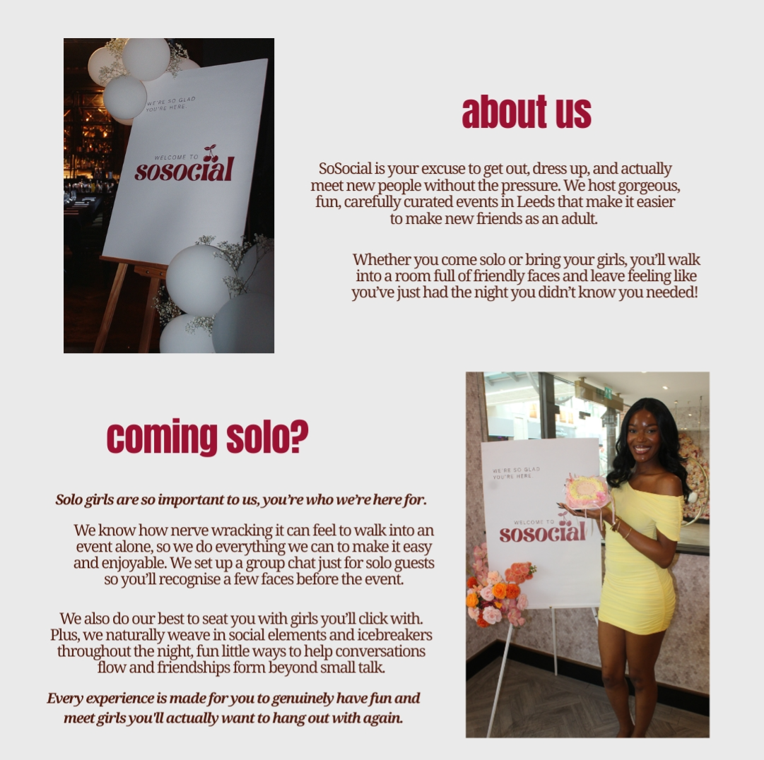 Girls in their 20s and 30s who just want to meet new people, have a good time, and make genuine connections. Whether you’re new to Leeds or just feel like your social circle could use a refresh, you’ll fit right in!